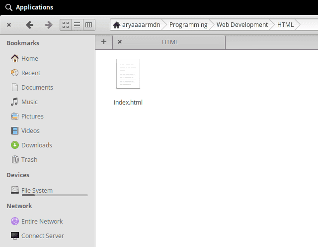 Disini, saya membuat file HTML dengan nama index.html.